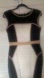 Size large good condition no flaws body-con black tan white long zipper down the back very sexy and glamorous measurements in photo