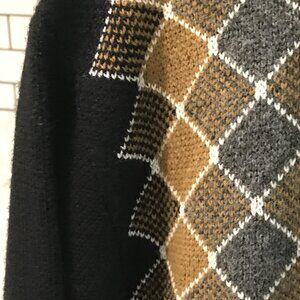 Color/Pattern: Black base with tan/brown and gray argyle diamond knit and white accent stitching