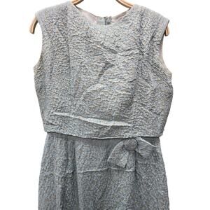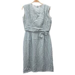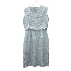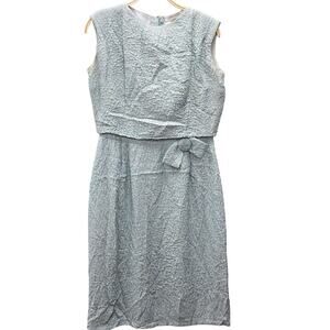 This beautiful jaw dropping dress is teal (think Tiffany) with metallic gold print. The material is textured & the entire dress is lined. Has pockets! Yes, pockets! Metal Zipper & union label.