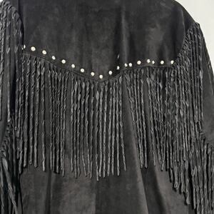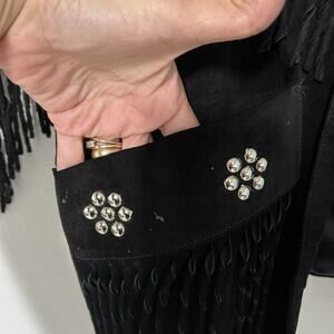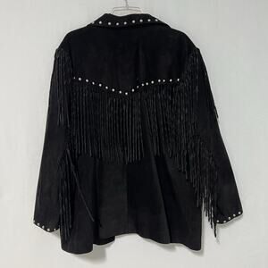 Vintage Arella Women’s Western Fringed Suede Leather Jacket XL Black Studs Rodeo