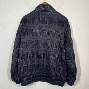 Vintage Ares Metallic Pleated Jacket Puffer Accordion Spotted Indigo - XL