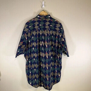 Vintage Argyle Golf Print Button Front Cotton Short Sleeve Shirt Size 2XT Casual