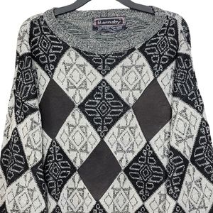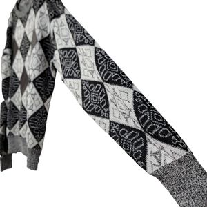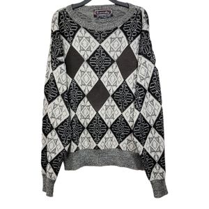 Vintage Argyle Patchwork Black White Long Sleeve Knit Pullover Men's Size Medium