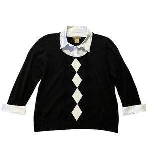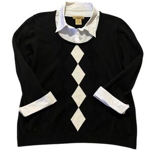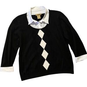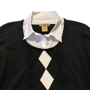 Vintage Y2K Argyle Sweater Layered White Button Down Top