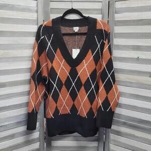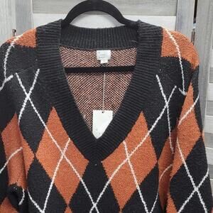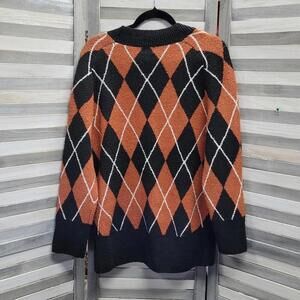 Vintage Argyle Sweater in Black, Orange & White | A new day | Medium