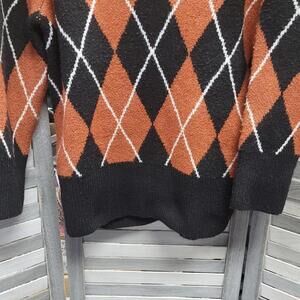Elevate your wardrobe with this stylish vintage argyle sweater! Featuring a fashionable V-neck design, this sweater showcases a classic argyle pattern in bold black, vibrant orange, and crisp white, perfect for any season. Made from soft, comfortable fabric, it is both eye-catching and cozy, making it a great addition to your casual or semi-formal looks. Ideal for layering or wearing on its own, this piece is versatile and timeless. - V-neck design for a flattering fit - Unique argyle pattern - Soft, high-quality fabric - Great for layering - Perfect for casual or semi-formal occasions