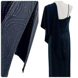 Vintage Arianna by Rachel Kay Navy Blue Rhinestone Formal Shawl Maxi Dress 12P