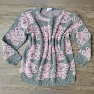 Vintage Arielle Teddy Bear Koala Acrylic Sweater Gray & Pink 80s 90s Kawaii M/L