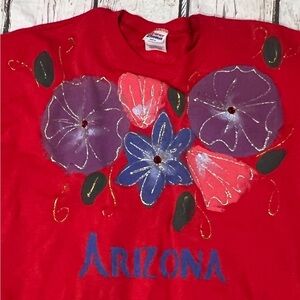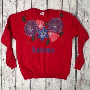 Vintage Arizona Tourism Red Floral Crewneck 1990s Pullover Jumper Sweatshirt