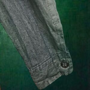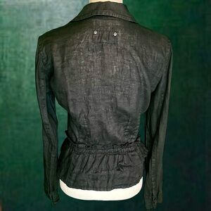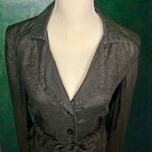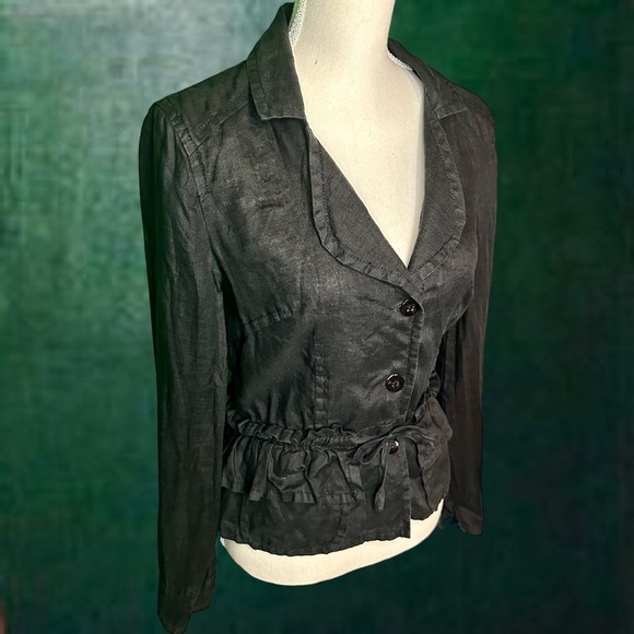 Vintage Armani Jeans Black 100% Linen Button Down Ruffled Waist Blazer Size 6