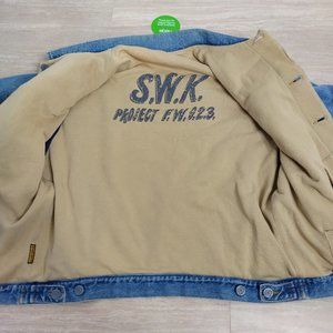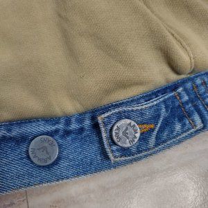 This vintage denim jacket from Armani Jeans is a must-have for any fashion-forward man. The jacket is reversible and features denim patches that give it a Western-inspired look. It has a classic fit and a mid-length jacket/coat length, making it suitable for both winter and spring seasons.