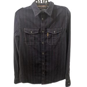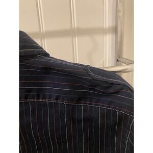 Vintage Armani Jeans Pinstripe Navy Western Style Button Down Size Small