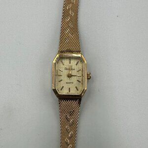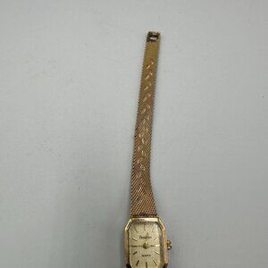 Vintage Armition Watch Women Gold Tone Textured Print Band New Battery 8 Inch