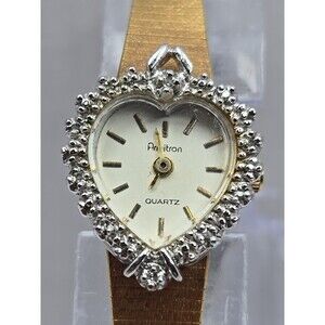 Vintage Armitron Heart Diamond Accent Quartz Watch Gold Tone New Battery Works