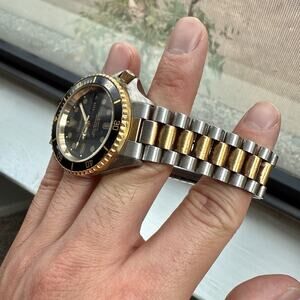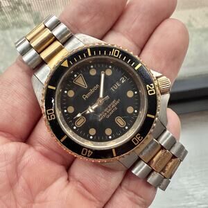 Vintage Armitron Pro All Sport Two-Tone Diver Black Dial Y143A Turtle Case Watch
