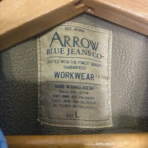 Step back in time with this amazing vintage Arrow Blue Jeans chore jacket! This men's size large jacket features a cozy fleece lining, perfect for those chilly days. The classic western style adds a touch of rugged charm to any outfit.