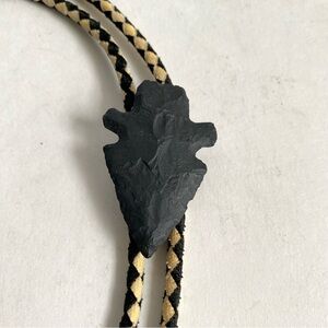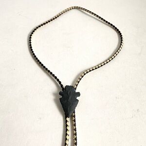Vintage Arrowhead Bolo Tie Western Black Stone Arrow Head Cord Unisex Mens
