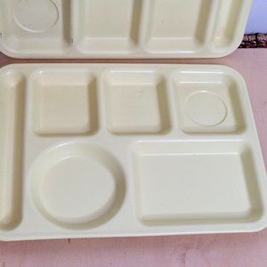 Vintage Arrowhead Melamine Divided Lunch Tray Set of 2 Pale Yellow 14 x 10 Inch