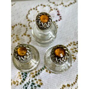 Vintage Art Deco Atomic Round Glass Perfume Trio Bottles Duvinne NY c1930s