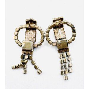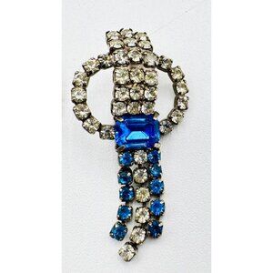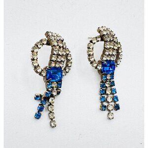 Vintage Art Deco Blue And Clear Prong Set Rhinestone Post Earrings