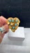 Vintage Art Deco Brass & Turquoise Blue Glass Bead Leaf Brooch