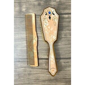 The Vintage Art Deco Celluloid Vanity Set from the 1940s features a luxurious faux marble peach design, adding a touch of elegance to any vanity or dressing table. This collectible set includes a variety of vanity accessories that showcase the intricate craftsmanship and unique Art Deco style of the era. Perfect for adding a retro charm to your bathroom or bedroom decor, this vintage vanity set is sure to be a conversation starter.