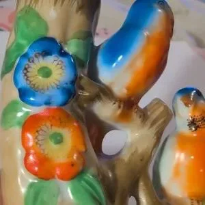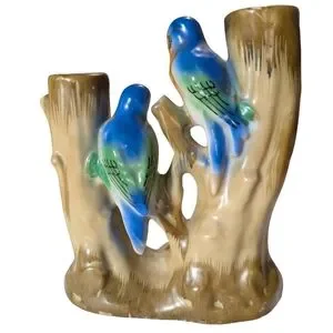 Vintage Art Deco Ceramic Parakeet Double Stem Bud Vase Japan