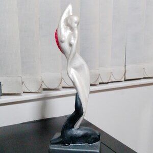 Vintage Art Deco Ceramic Statue Nude Woman with Greyhound