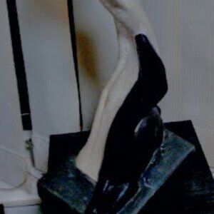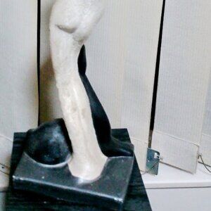 Stunning example of mid century modern design. The lines of the two subject blend tantalizingly into one masterful image echoing the decadence as well as despair of the Jazz Age. Artist unknown.