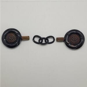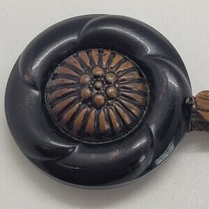 Art Deco Black & Gold-Tone Celluloid Cape Coat Closure Vintage Accessory