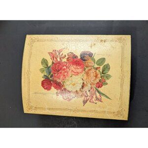 Vintage Art Deco Dresser Jewelry Trinket Box Camelback Rose Motif Wood