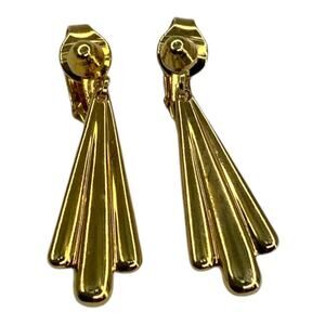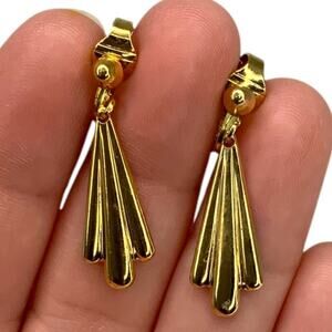 Vintage Art Deco Drop Gold Tone Clip On Earrings