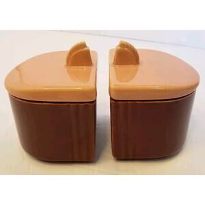 Vintage, pre-owned condition. One small chip on rim of one jar. One blemish on one of the lids. Please see all pictures.