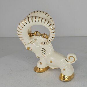 Vintage Art Deco Grindley Ware Ram Goat Figurine White Gold Zodiac Aries