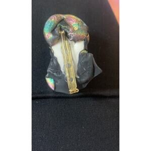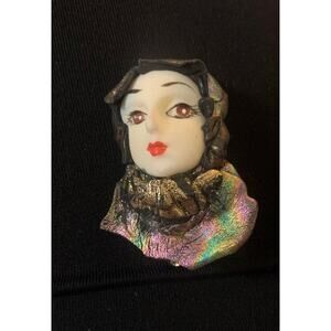 Vintage Art Deco Lady Face Brooch Metallic Hat Collar 3D Statement Pin Gypsy