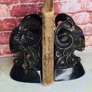 Vintage Art Deco MCM Solid Brass Ram's Head Bookends
