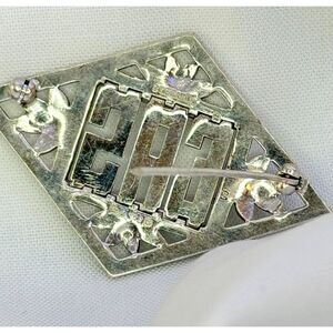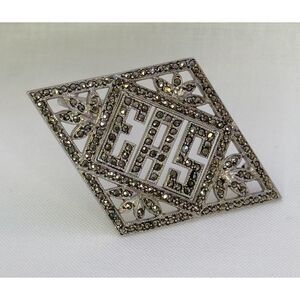 Beautiful Art Deco marcasite brooch in sterling silver. It has a unique diamond shape and is in good condition with some light scratching on the back as pictured.