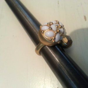 I bought this gorgeous milk glass and gold metal ring for a friend. Alas, it does not fit her.
