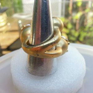 Vintage milk glass cabochon ring. Super cool design, looks like you are balancing three balls on your fingers. Size 6.5. Excellent vintage condition. Only minor wear on gold plating.