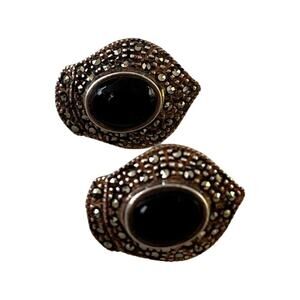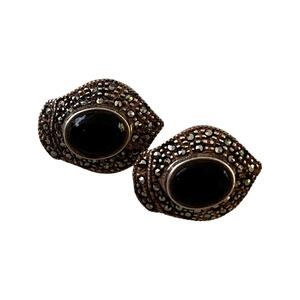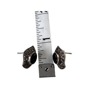 These are some beautiful vintage art deco style post earrings. They're sterling silver with marcasites and black onyx. The earrings are marked 925 for sterling silver.