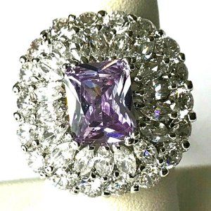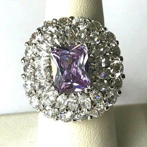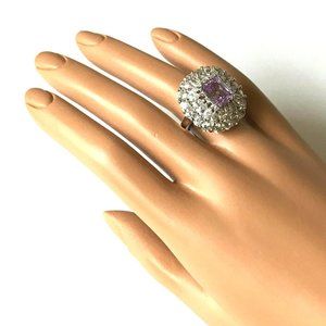 Vintage Art Deco Purple CZ Cocktail Ring Size 7 Camilla Lucia Silver Plated