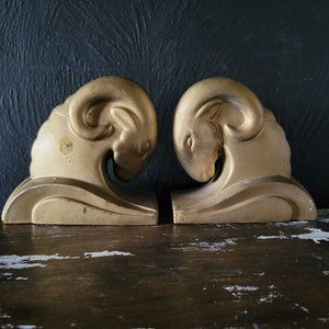 Vintage Art Deco Ram's Head Bookends, Art Deco Library Decor c. 1930s