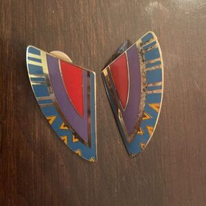 Vintage Art Deco Retro 1920s Eclectic Womens Earrings Laurel Burch Clip Ons