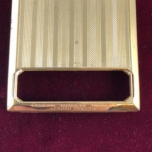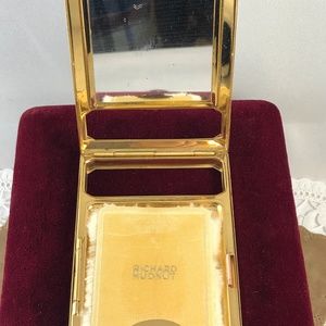 Vintage Art Deco Richard Hudnut Compact Makeup Case Has good Mirror original fur applier side bar push down to open to Powder some surface scuffs on top back is almost perfect signed on back see photo inside almost new