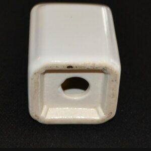 There is no brand name or other marks shown on these. One plug is missing. Art Deco design of white ceramic.