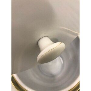 In great condition, however there is a small unnoticeable crack on the inside of the handle of the lid.