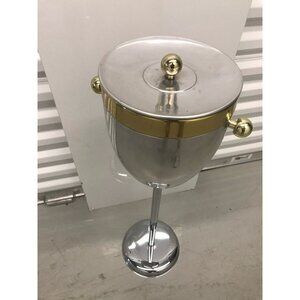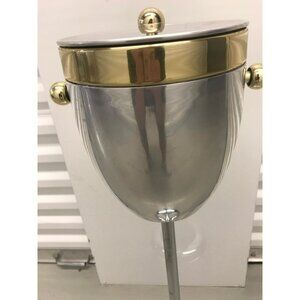 Vintage Art Deco Standing Champagne Wine Ice Cooler Brass & Aluminum 30" Tall
