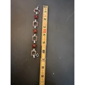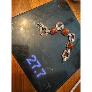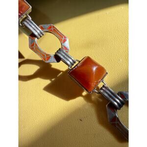 Vintage Art Deco Sterling Red Enamel Bracelet Carnelian Sard Pyramid Cabochon