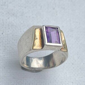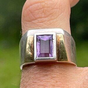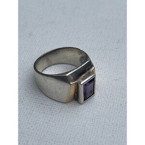 Vintage Art Deco Sterling Silver Amethyst Ring - Size 7 - Men's Ring