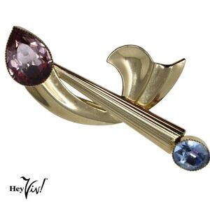 * Special Feature: This Vintage Pin has graceful curves in a deco style. There's a large rhinestone at each end.